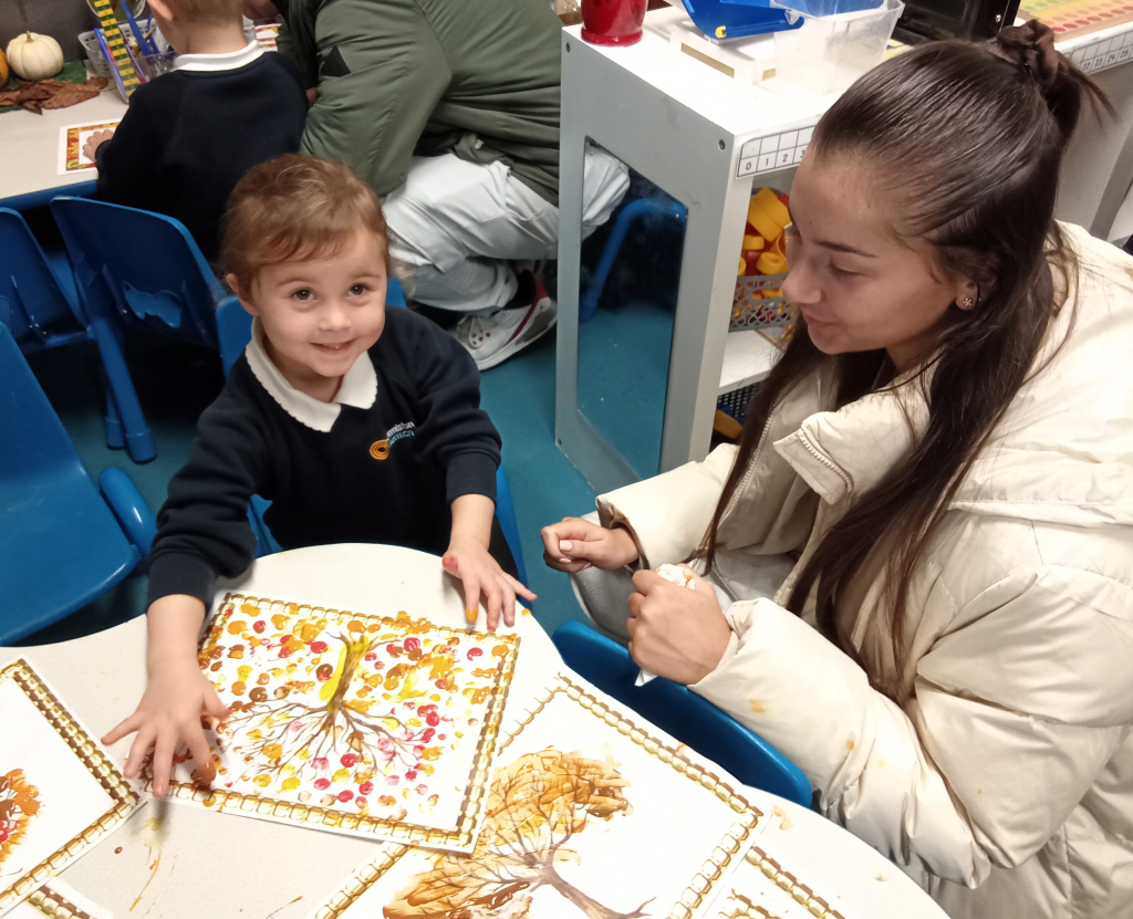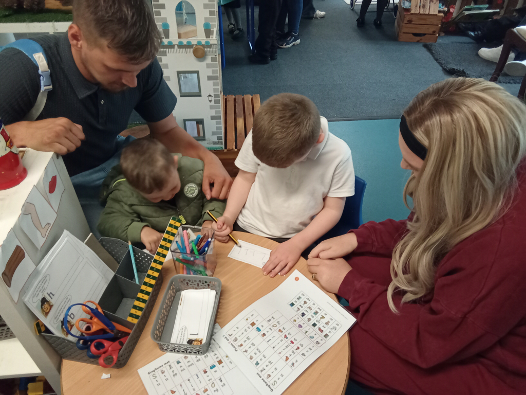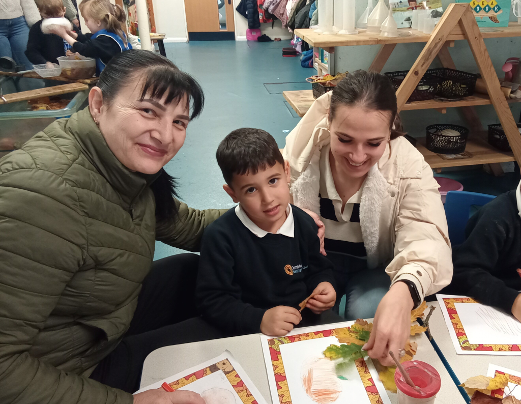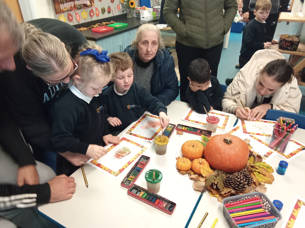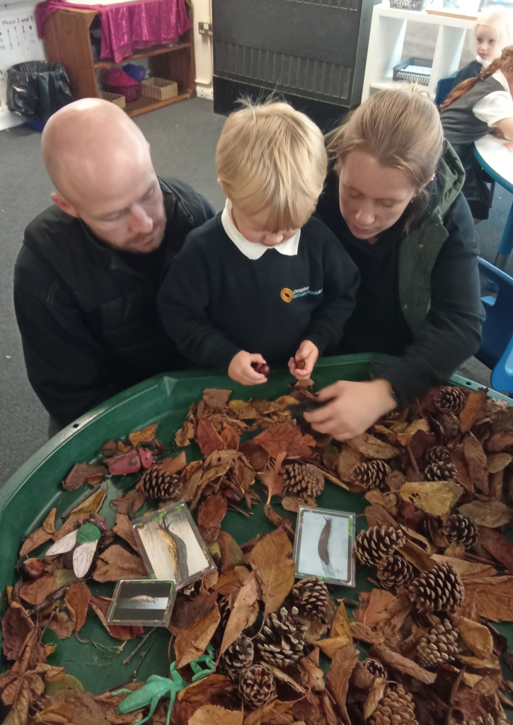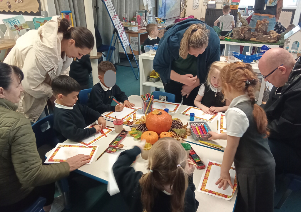 The Reception children were happy to welcome their family members in for an Autumnal Themed share session. Together they showed the parents how they learnt phonics, then listened to The Scarecrows Wedding book. After that was autumnal activities to share together.